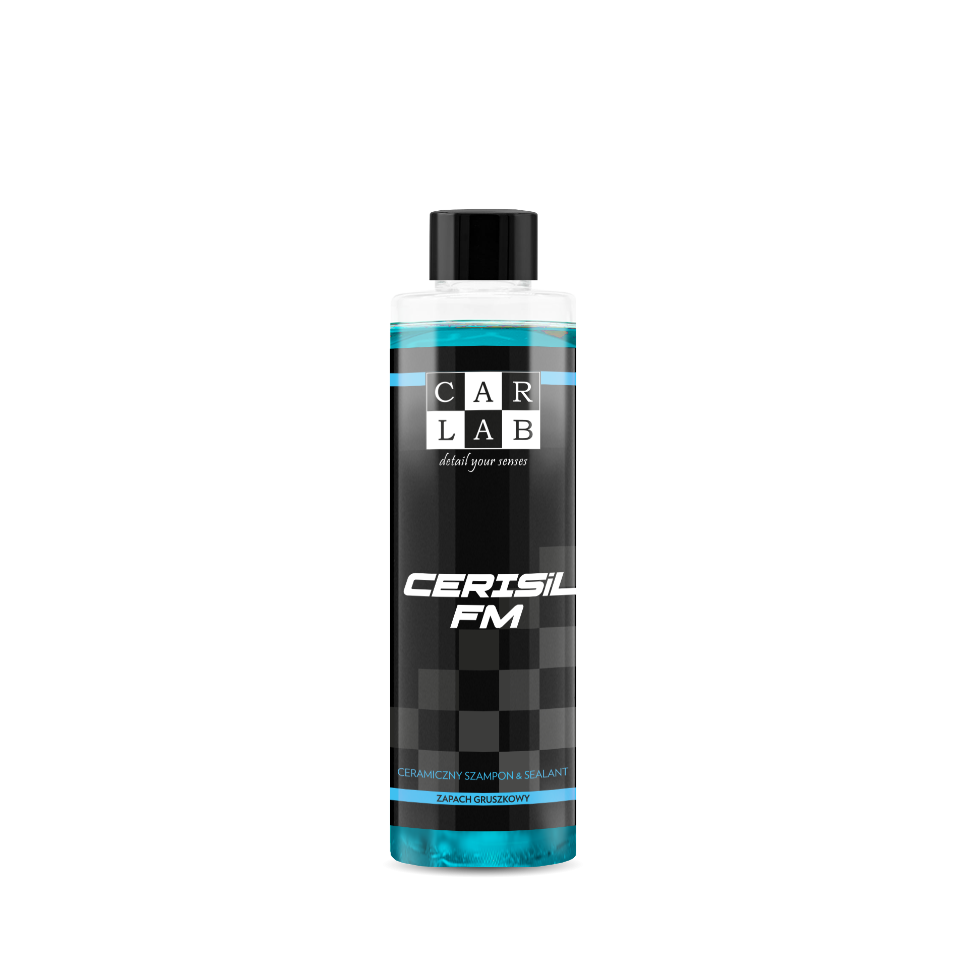 CARLAB CERISiL FM to wysoce zaawansowany, wielozadaniowy koncentrat oparty na błonotwórczych polimerach krzemowych, przeznaczony do mycia i pielęgnacji samochodów. Dzięki niezwykłym właściwościom CERISiL FM tworzy na mytej powierzchni silnie hydrofobową, odporną na działanie chemii i warunków atmosferycznych powłokę. Może być używany w formie piany bądź jako klasyczny szampon. CERISiL FM jest bezpieczny dla wszystkich powierzchni, na jałowych lakierach tworzy ochronną powłokę, która przy każdym użyciu jest wzmacniana i regenerowana. Na lakierach zabezpieczonych powłokami ceramicznymi CERISiL FM ma działanie regenerujące, przywracając ich pierwotne właściwości. Na powierzchniach szklanych tworzy efekt „niewidzialnej wycieraczki”. CERISiL FM może być również używany jako wspomaganie osuszania lub wet coat – jednak przede wszystkim jest to szampon, który jest doskonałym rozwiązaniem do mycia aut zabezpieczonych powłokami ceramicznymi.