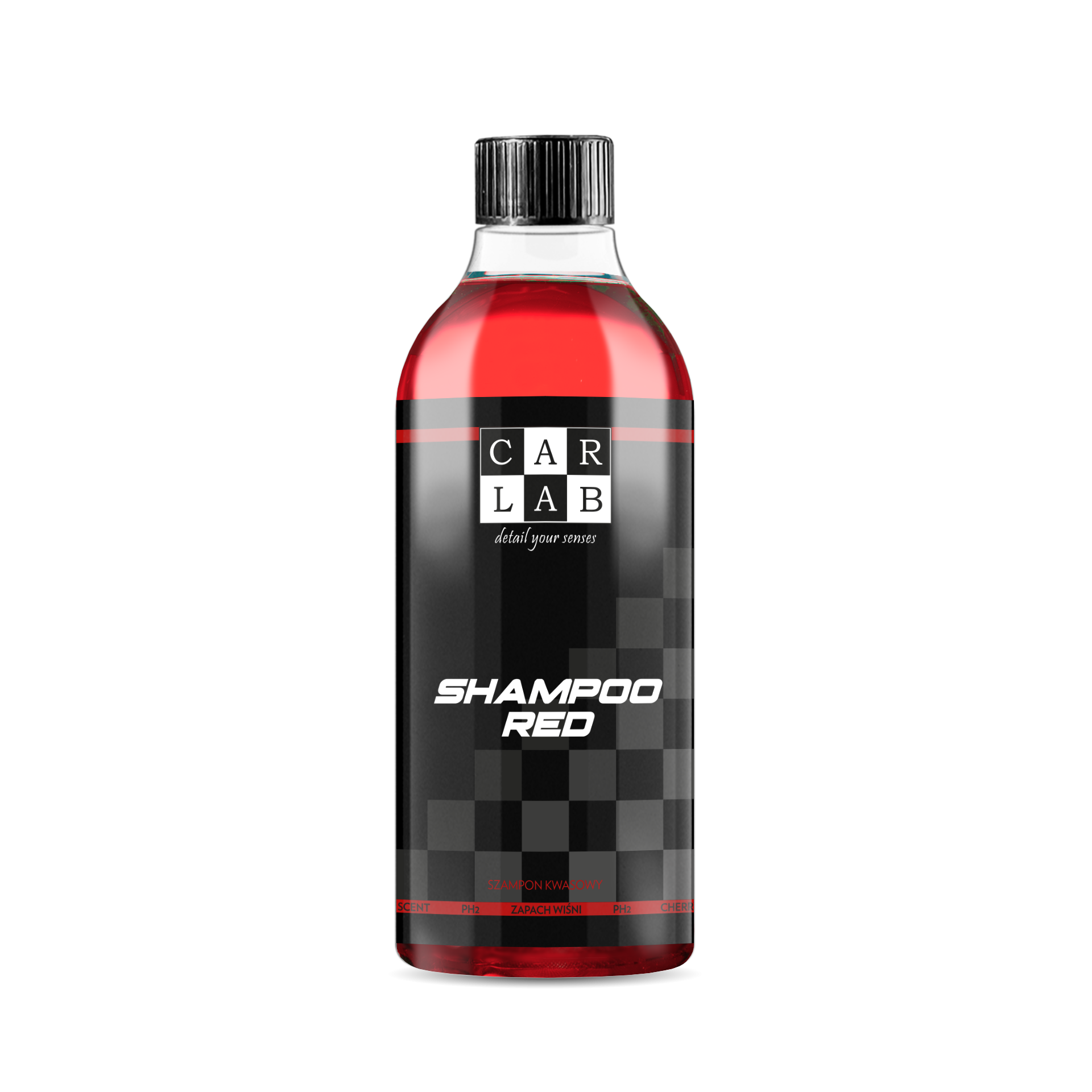 CARLAB SHAMPOO RED o wysoce skoncentrowany, kwasowy szampon samochodowy przeznaczony do mycia samochodów zabezpieczonych powłokami ceramicznymi, woskami oraz wszelkiego rodzaju LSP. Dzięki skoncentrowanej formule oraz niskiemu pH, szampon z łatwością usuwa wszelkie osady mineralne odtykając powłoki oraz przywraca hydrofobowość. Mimo kwasowego pH szampon jest całkowicie bezpieczny dla mytych powierzchni. Produkt posiada bardzo przyjemny zapach, zapewnia mocną, stabilną pianę oraz doskonały poślizg, dzięki czemu praca z nim jest czystą przyjemnością.