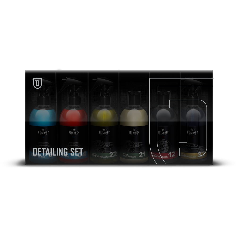 W zestawie znajdują się: Ceramic Detailer, Wet Coat, Ready Interior Cleaner, Interior Dressing, Creamy Tire Dressing, Hydro Glass Cleaner.