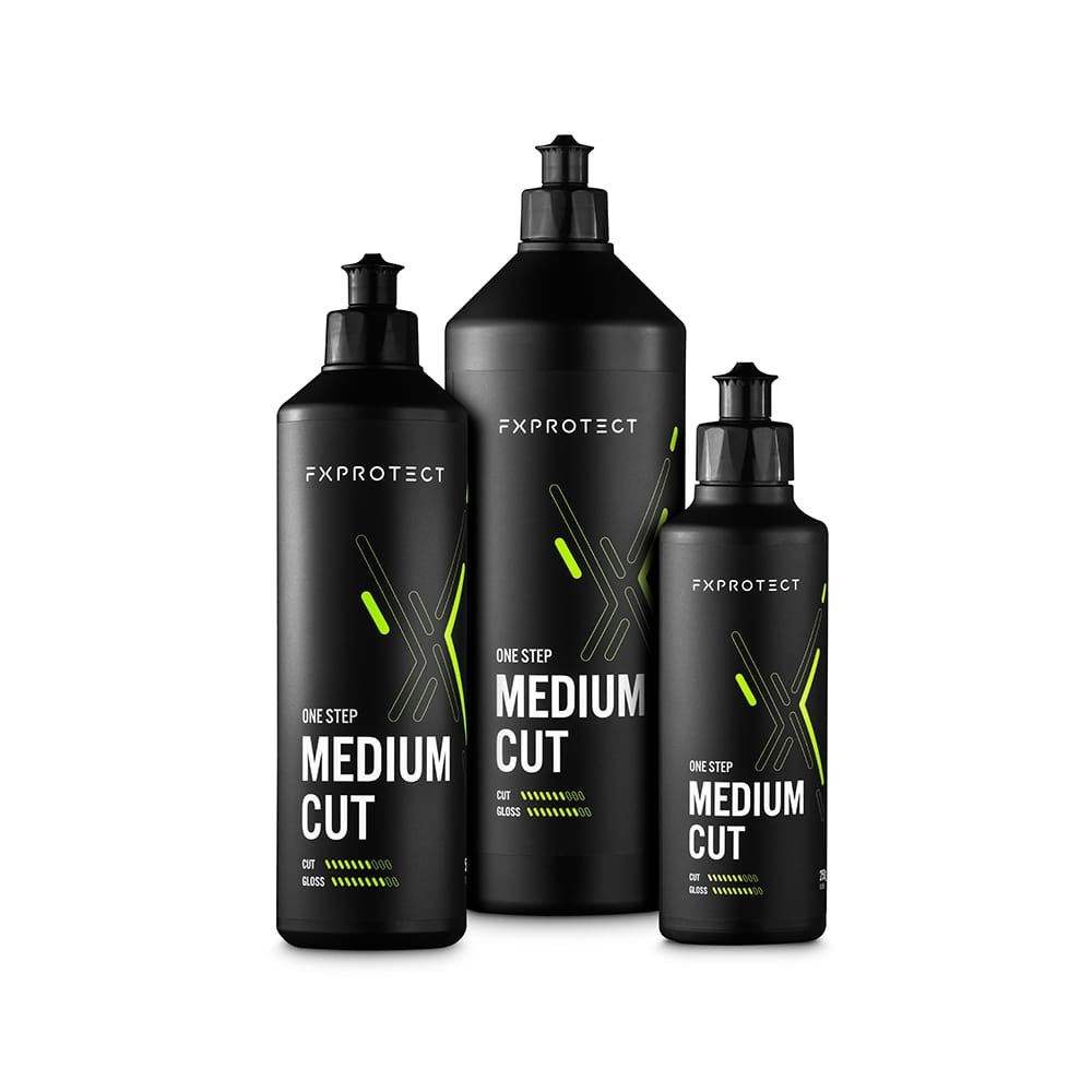 Średniościerna pasta polerska MEDIUM CUT / ONE STEP przeznaczona do usuwania umiarkowanych zarysowań z powierzchni lakierniczej. Pozostawia wysoki poziom połysku w zastosowaniu ONE STEP. Usuwa zmatowienia od P2000. Wysokowydajna oraz niskopyląca dzięki czemu skraca czas pracy na powierzchni. Stworzona na bazie wody, nie zawiera rozpuszczalników oraz wypełniaczy. Idealnie przygotowuje powierzchnię pod zastosowanie pasty FINE CUT.