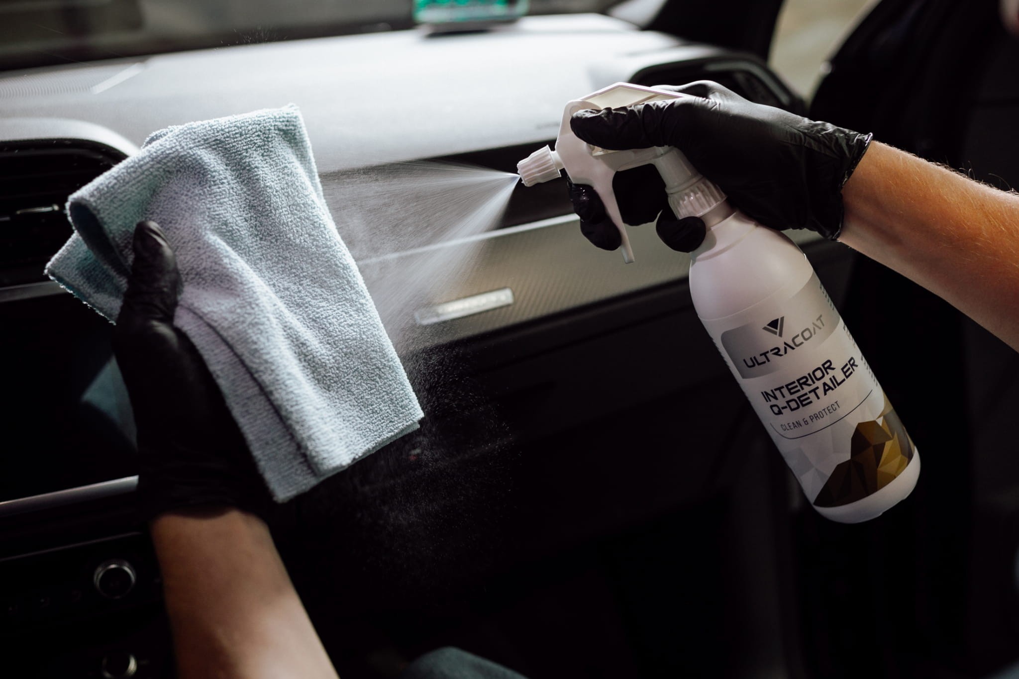 Tworzywa pielęgnowane naszym Interior Q-Detailer otrzymują satynowe wykończenie, które utrzymuje się przez minimum kilka tygodni. Produkt jest bardzo łatwy w użyciu i posiada świetne właściwości czyszczące, przy zachowaniu maksymalnego bezpieczeństwa dla powierzchni i użytkownika. Filtry UV utrzymają głębię koloru tworzywa, a właściwości antystatyczne powstrzymają osiadanie kurzu na powierzchni. Do zestawu dołączony jest profesjonalny atomizer.
