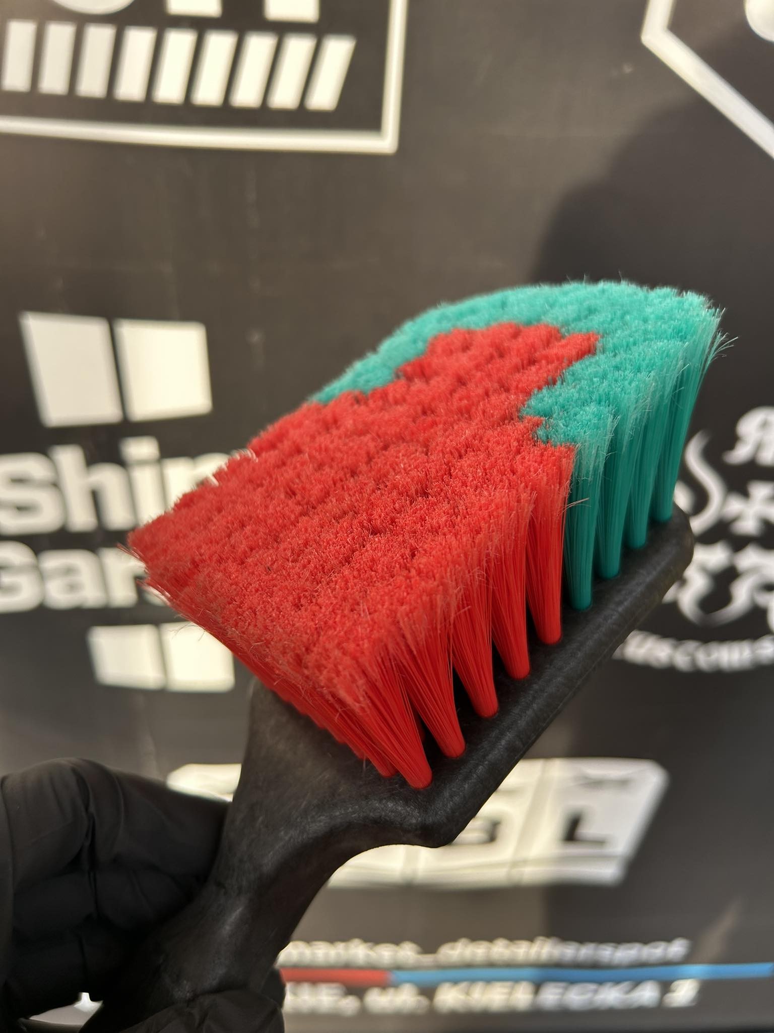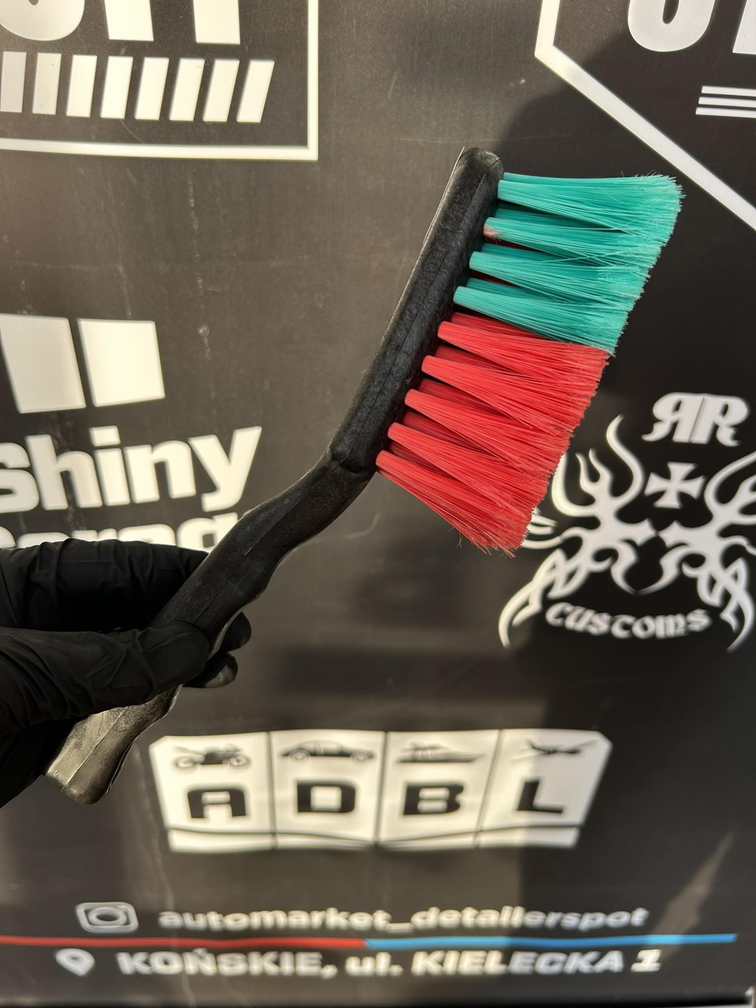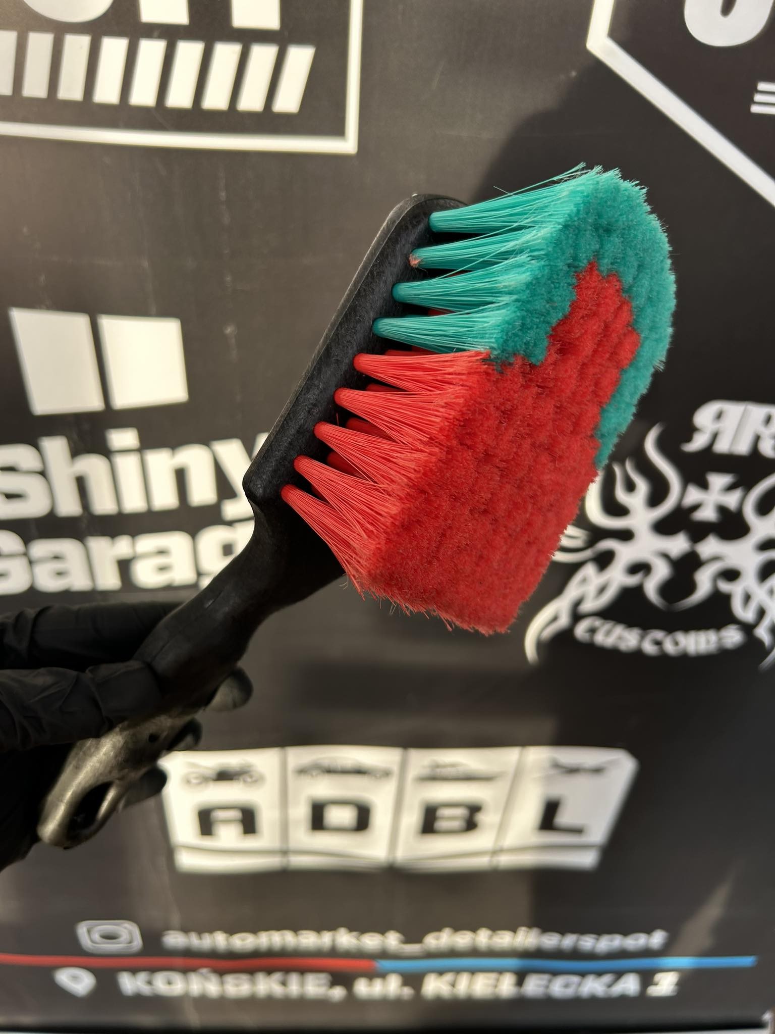 Wygodna szczotka na krótkim trzonku z gęstym i miękkim włosiem. Polecana do mycia felg, nadkoli, elementów komory silnika, zapierania tapicerki.