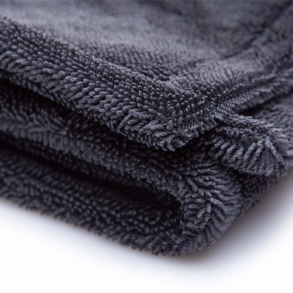 Nowoczesny rodzaj ręcznika do osuszania o unikalnym rodzaju koreańskiej fibry „Twisted Pile”. Charakteryzuje się bardzo dużą chłonnością oraz szybkoschnącym włóknem. Gęsta i delikatna struktura mikrofibry nie pozostawia zarysowań i jest bezpieczna dla każdego rodzaju lakieru. Ze względu na swój rozmiar jest idealny do osuszania trudno dostępnych miejsc i zakamarków. Ręcznik jest dwustronny oraz posiada fibrowe obszycie również na krawędziach. Wysokiej klasy włókno umożliwia pracę bez ryzyka powstawania smug na lakierze samochodu. Kompaktowa wersja ręcznika KING Drying Towel.